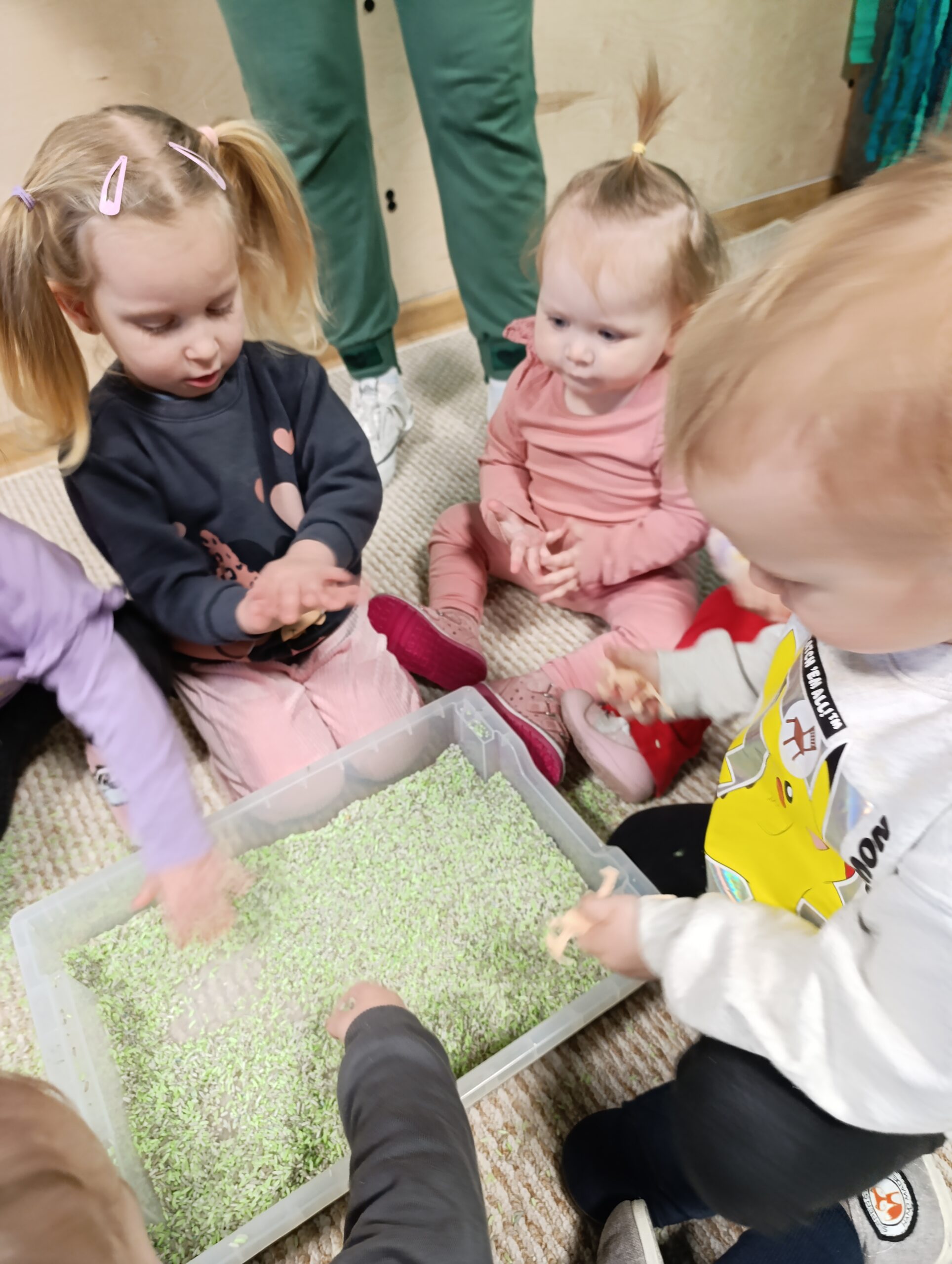 Na początek mali odkrywcy musieli przejść przez specjalną ścieżkę sensoryczną pełną wyzwań! Skakali jak dinozaury, wspinali się po przeszkodach i pełzali niczym pradawne stworzenia. A na zakończenie tej ekscytującej trasy – wspólny taniec dinozaura, który dostarczył mnóstwo radości i śmiechu! 🕺🦖🎶