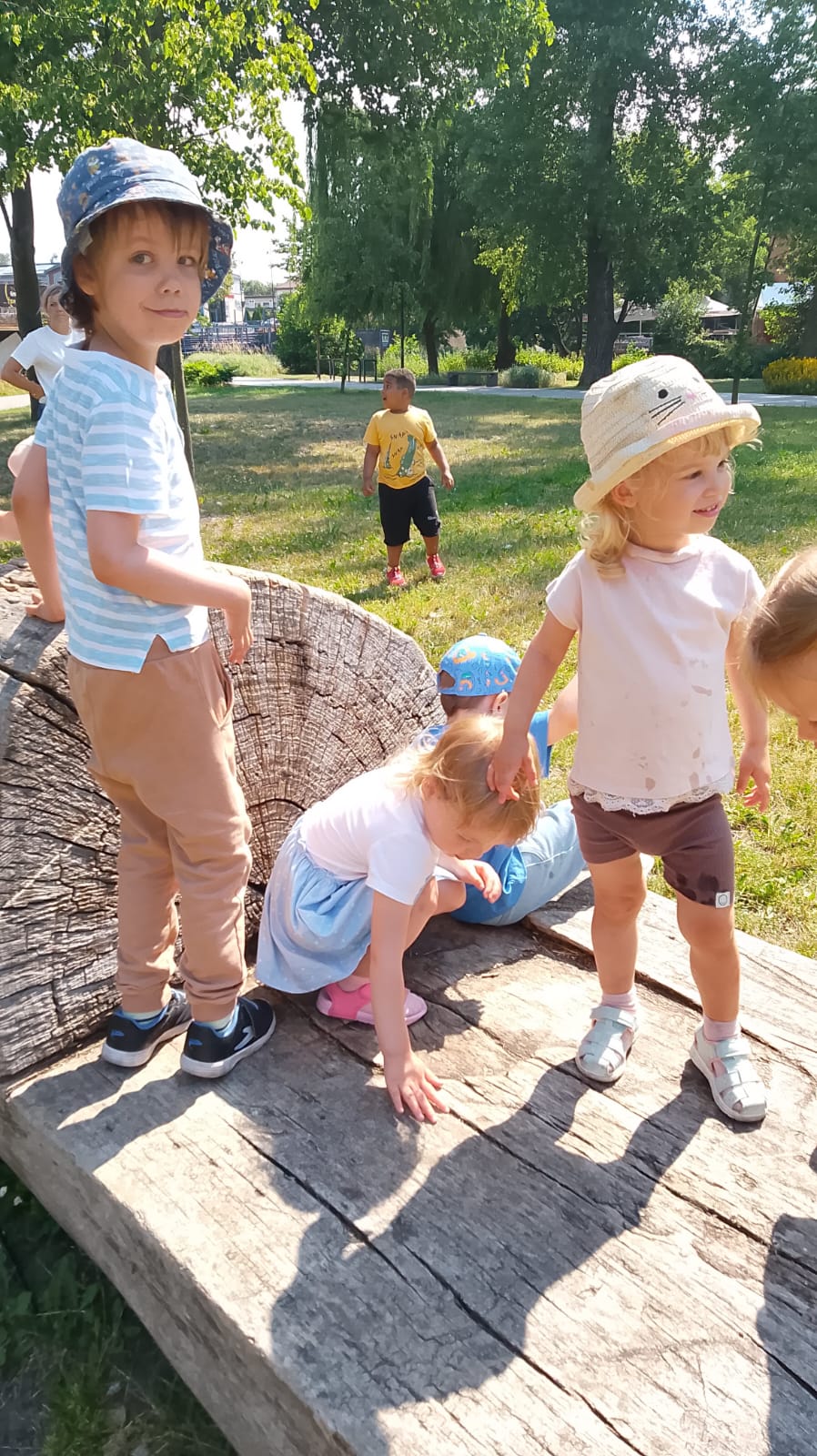 Dziś dzieci z naszego przedszkola i klubiku wybrały się na letni spacer do pobliskiego parku. Pogoda dopisała w 100% – słońce świeciło pełną parą, a uśmiechy nie schodziły nam z twarzy! 😄