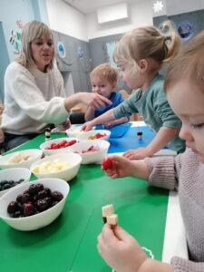 20 lutego 2025 roku nasze maluchy z Klubiku Dziecięcego z wielkim zaangażowaniem przygotowywały przekąski na nadchodzącą imprezę karnawałową! 🍓🍪👩🍳