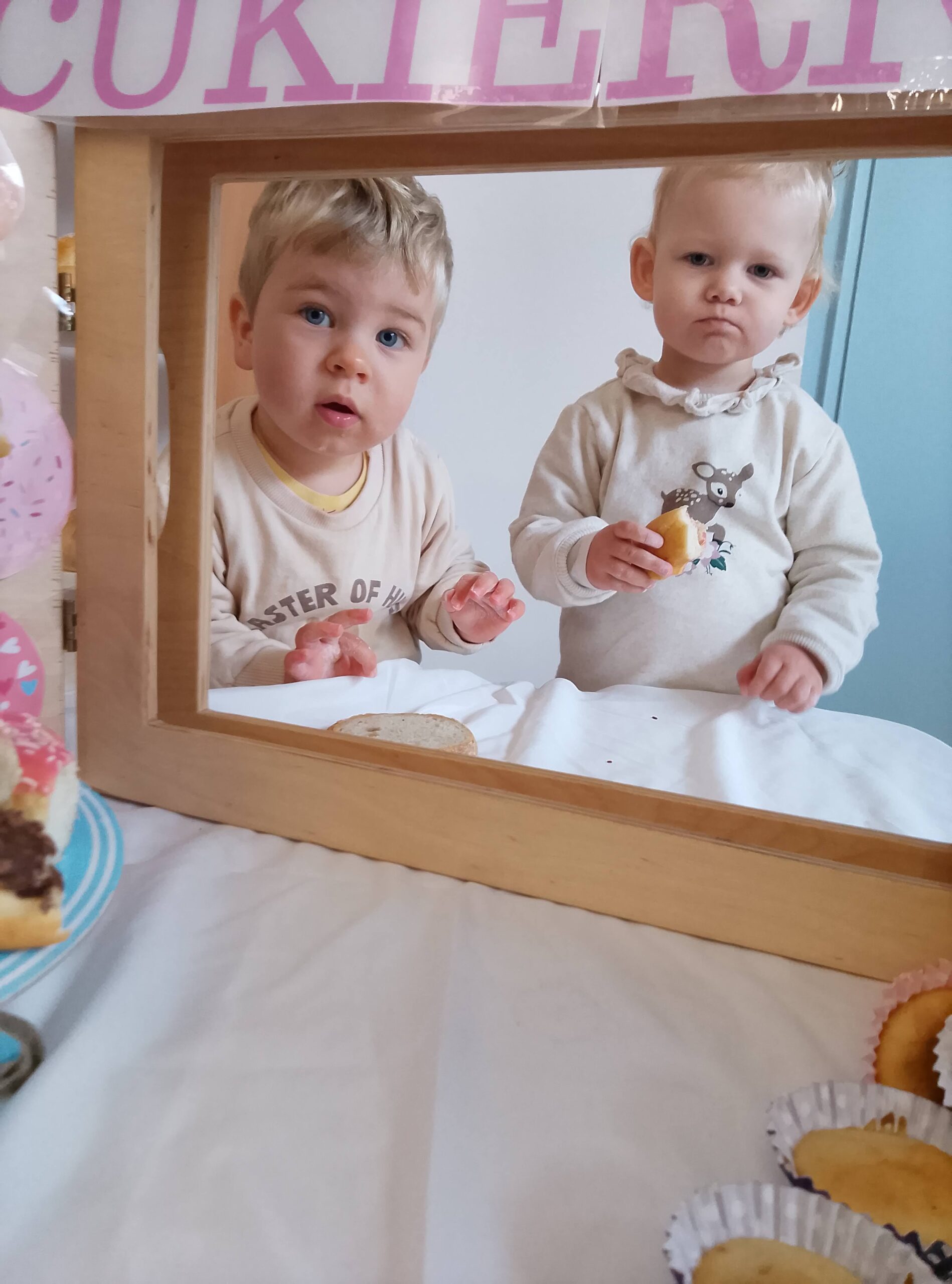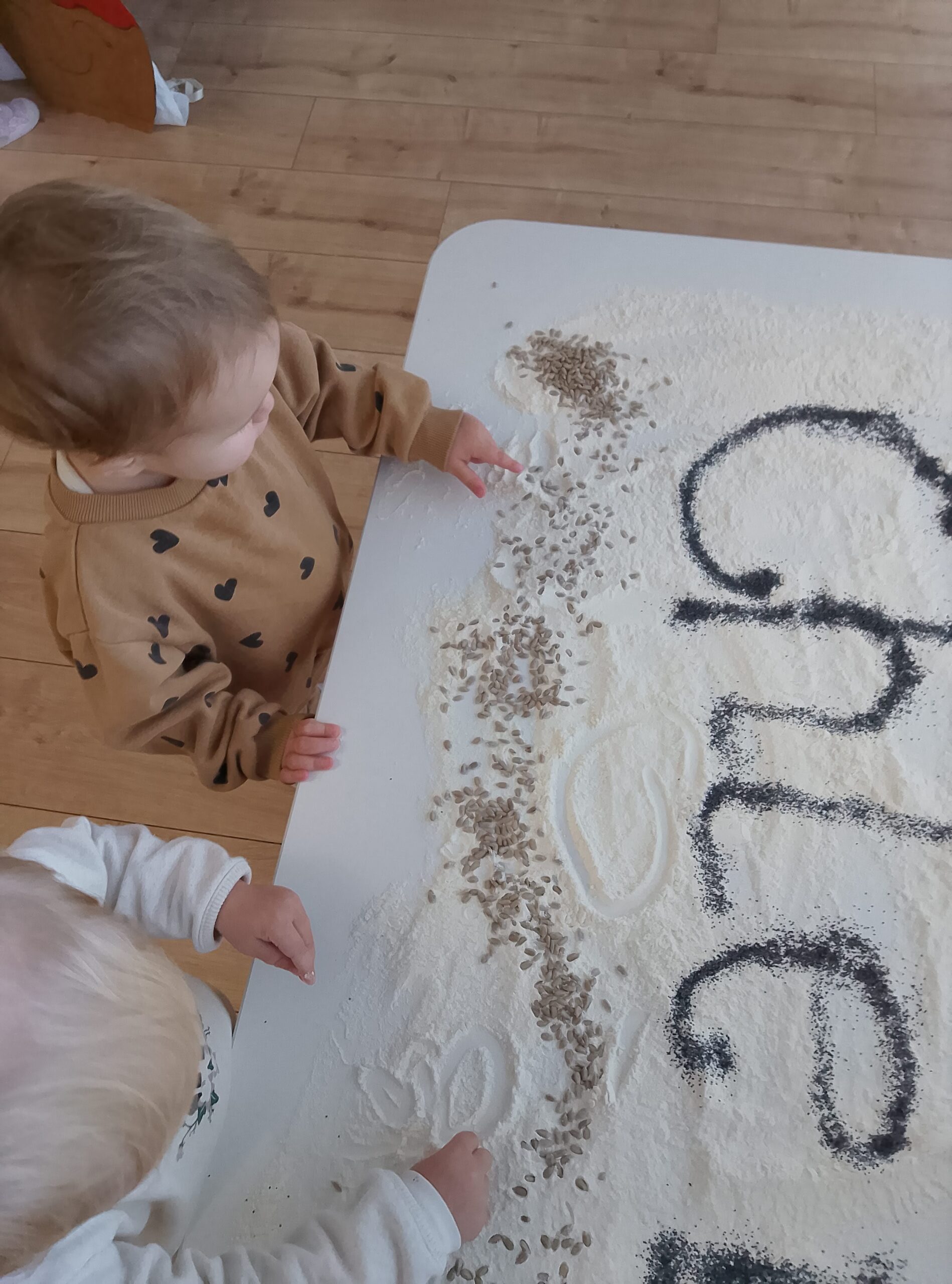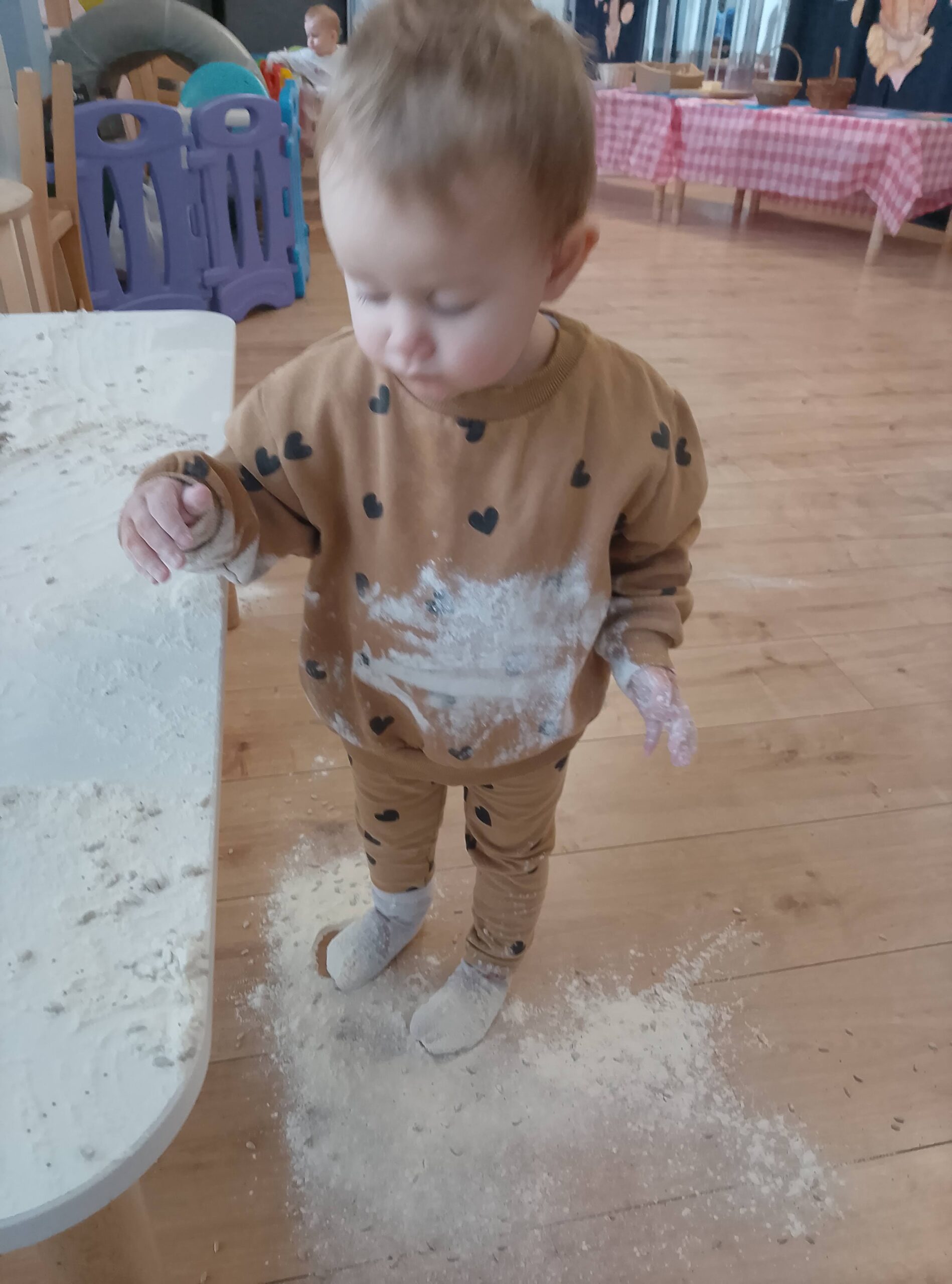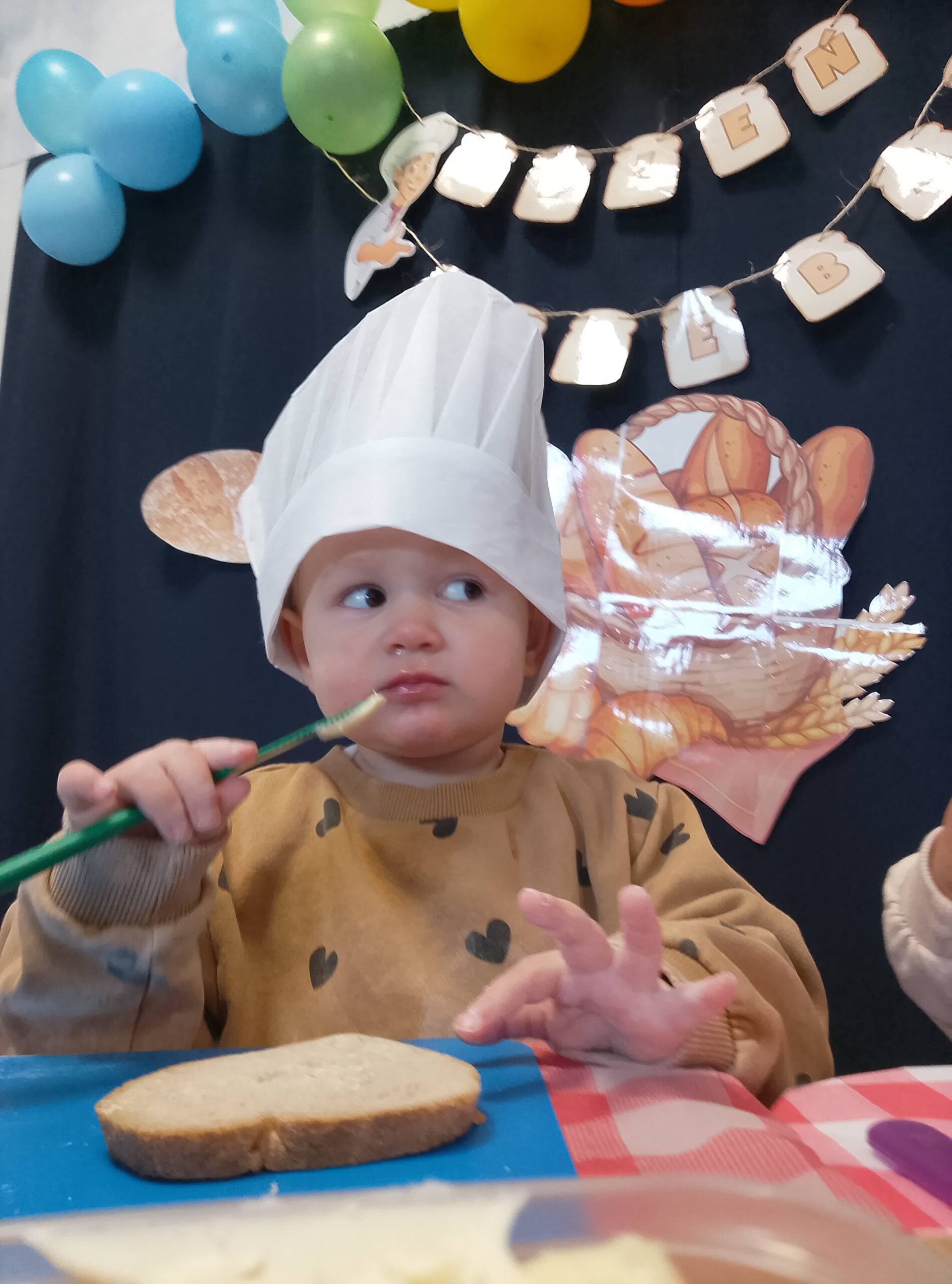 Tego dnia nasza placówka zamieniła się w prawdziwą piekarnię i cukiernię. Dzieci miały okazję wcielić się w role piekarzy, cukierników i sprzedawców. Na naszych stoiskach pojawiły się bochenki chleba, chrupiące bułeczki i pyszne rogaliki. Zabawa w sklep była pełna śmiechu i radości — każdy mógł „kupić” coś pysznego i poczuć się jak w prawdziwej piekarni.