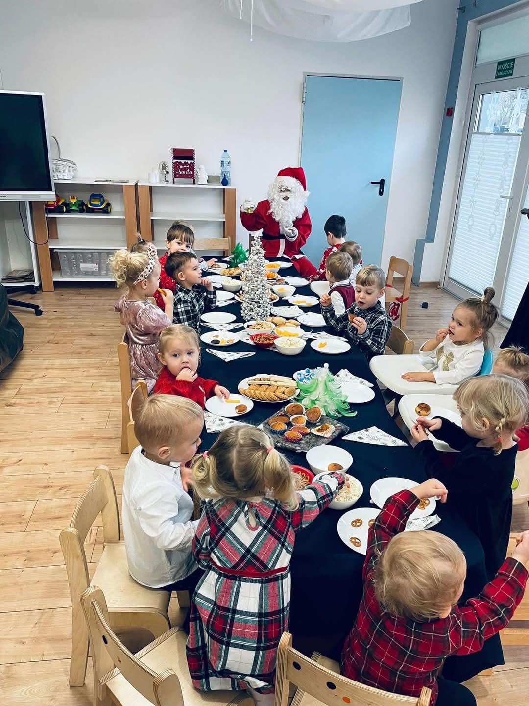 Nie zabrakło także zabaw i konkursów o tematyce świątecznej, w których dzieci wykazały się kreatywnością i zaangażowaniem. Na zakończenie dnia czekał na wszystkich słodki poczęstunek – ciasteczka i gorąca czekolada, które smakowały wyjątkowo w tej magicznej atmosferze.